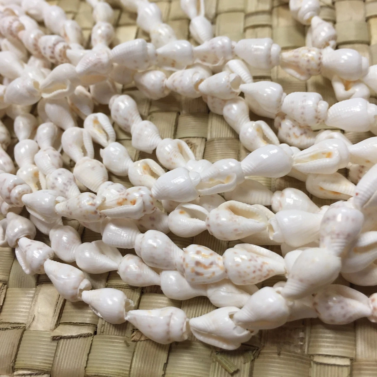 Consists of a dozen (12qty) 34-inch strand leis. Made with real seashells.