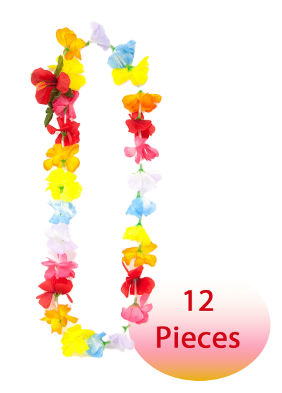 One Dozen (12 qty) silk lei pack set containing an assortement of colors/color mixes.